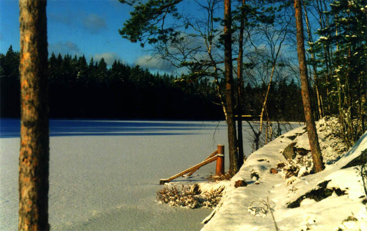 Через Бобриное кто-то шел.… Но, судя по следу, до противоположного берега не дошел.… И тишинааа…