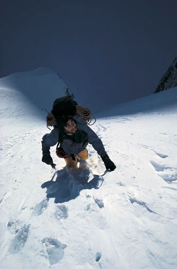Так же как и со Steve'ом на Cerro - Torre, так и здесь с Mugs'ом мы минимизировали количество снаряжения, чтобы увеличить скорость движения: 18 крючьев, набор закладок, 7 ледовых крючьев, 4 «камалота» и запас продуктов и горючего на 4 дня. Mugs подумывал взять пробойник, но я настоял на обратном – он слишком тяжелый.