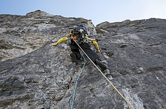 На сильно разрушенном известняке ни одна точка не внушала доверия, и мне не слишком-то хотелось грузить станцию. Мы столкнулись с лазанием, когда даже второму лучше было не срываться.