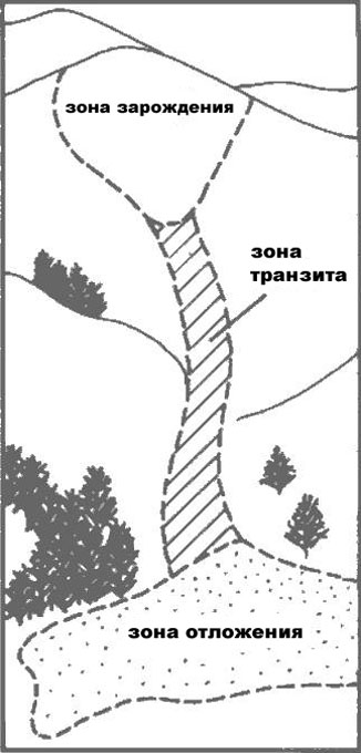 При необходимости подъемов и спусков в зоне зарождения лавины, следует придерживаться края этой зоны. Потому что при внезапном отрыве снежной толщи, у человека находящегося на краю, больше шансов спастись, чем в центральной части зоны.
