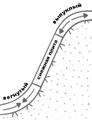 При внетрассовом катании не стоит делать остановки на выпуклых или вогнутых участках склонов. Избегать заезда на боковые стенки кулуара. Не стоит так же двигаться длинными дугами пересекая весь склон от края до края. Если на соседних склонах сходной ориентации сошли лавины – это повод задуматься! Как себя вести если лавина все-таки сошла?