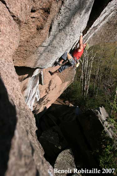 Оуллет в течении трех лет пытался повторить этот маршрут, сделать первый настоящий рэдпоинт по 80-ти футовой трещине под пальцы, которая проходит по двум карнизам на Mont King (Квебек). Сложность заключается