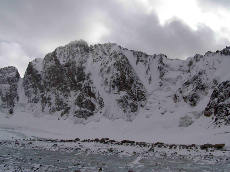 В эти два человека попал и наш Серега (Директор)…проведя три дня на высоте 4000 метров, с ледовыми занятиями на п. Изыскатель, он начал кашлять, потом жаловаться на боли и судороги при кашле…в общем врач направил его вниз… Остались мы с Бекиром, т.е. рабочая двойка…