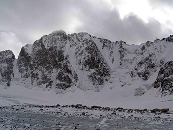 По плану было сходить 4 А на Байлян Баши, вышли в 6 утра, как дураки, ходили по леднику во тьме под завывание ветра и искали следы, которых не могло быть, т.к. наши то заметало тут же…и думали, как же мы могли выспаться за этот лишний час…короче люди нечего там делать так рано…дошли в 7.45. спецом тянув время до рассвета, т.к. светает в Арче 8.00, в 8.05 докатывает до Медвежьего угла, куда мы собственно и дотяпали! Еще странная вещь здесь постоянно дует, по стене несутся маленькие лавинки, лед который вылетает из под инструментов вихрем поднимает вверх и тут же на тебя скидывает…в общем бардак… Начали работу в 8.00, в 9.30 были на вершине, стена показала что оба в отличной форме, можно работать дальше, пошли дюльфера в 10.30 были у подножья, фотали мышонка (ну раз год Мыши), милой девочки, которая подарила мне ее в Тюмени…в 11.30 у подножья п. Симагина меня осенила мысль пролезть седня самый крутой лед в районе, т.е. 4Б п. Симагина!!! Идея понравилась Бекиру, съев энергетические батончики, мы начали преодолевать ненавистный берг…и понеслась… три веревки 70 градусного льда которые постепенно выполаживаются и до перемычки просто бежится – 7 веревок! В 15.30 мы были на перемычке, погода начала портиться и мы решили слинять, т.к. маршрут нам все равно не в зачет, а ради разминки и для показателей нашему тренеру Сан Санычу, мы решили не геройствовать… До нас лазали ребята из Москвы (пара Леша и Ирина), они оставили спусковые петли по всему маршруты, за день замело так, что мы нашли всего три спусковые петли… т.е. спуск осуществляли с помощью самовыверта на обоих маршрутах…в 17.40 мы были у подножья…заметно устали…хорошо потренировались…еще и по леднику плестить…кошмар…ну ниче…в хижине друзья и чай…