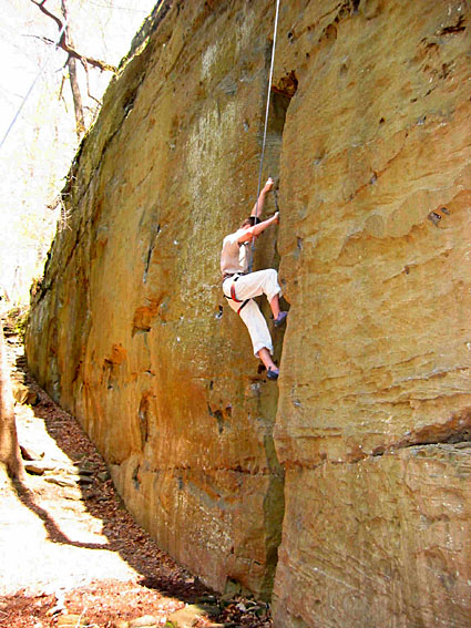 После короткого отдыха Милт предложил мне пролезть трассу сразу справа от Hinckley Crack. Ту, которая 5.9. Страховал парень по имени Брайан. Раньше я его не встречал. Он заверил, что лазает уже десять лет, и страховать умеет.