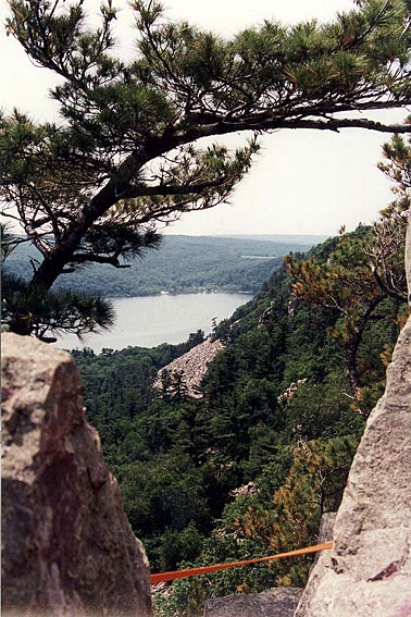 В часе от города Madison есть озеро под названием Devil’s Lake. Вокруг озера скалы из красного гранита – одно из немногих мест, где официально разрешено лазать. Мы карабкались по завалам талюса – весьма крупнозернистой каменной осыпи – и смотрели, как скалолазы занимаются своим серьезным делом.