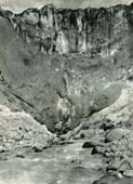 Удовлетворившись первым осмотром и отщелкав за 40 минут двухдневный запас пленки, решаем обосноваться все-таки повыше на террасе правого борта ущелья, где и устанавливаем свой постоянный лагерь.