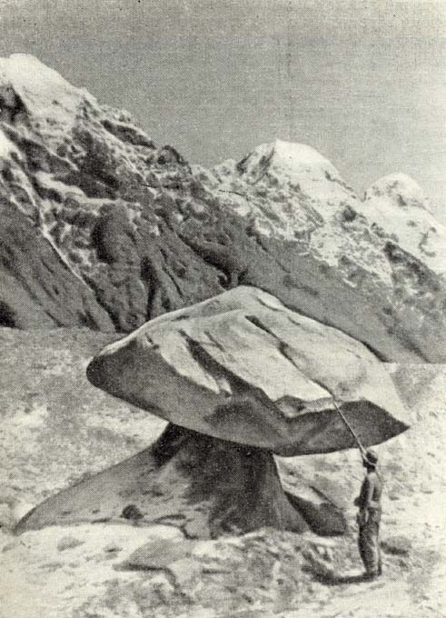 путешествие вниз по долине вместе с ледником. В 1954 г. глыба находилась