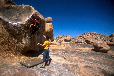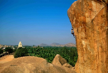 Хампи: Это самый популярный скалолазный район в Индии после того как Крис Шарма приехал сюда и сделал свое видео паломничество. Хампи это боулдеринговый рай на юге Индии, около 350 км от города Бангалор. Это былая столица древней Vijayanagara империи с 14-го по 16-ый века и группа монументов в Хампи признана ЮНЕСКО как объект мирового наследия. Тем не менее, в Хампи много спортивных трасс, боулдеринг найдется на любой вкус, с категориями от V0 до V11. Небольшое предупреждение: скалы гранитные и очень острые! Некоторые иностранные скалолазы проводят здесь до шести месяцев, и периодически возвращаются сюда. Проживание не проблема, есть несколько доступных дешевых домиков. В Хампи лучше всего ездить с октября по февраль. Можно приехать и в другое время, но здесь становится слишком жарко.