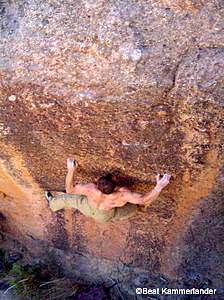 Bernd : Профессиональный скалолаз должен зарабатывать деньги и может жить на эти деньги. Поэтому я не могу назвать себя профессионалом. Я студент, ну, или по крайней мере я был студентом очного отделения (география) с 1999 по 2001 год. Потом я проводил все больше и больше времени, занимаясь боулдерингом, и просто посещал университет… для сдачи экзаменом один-два раза в год. Но рано или поздно я должен его закончить. Когда у меня заканчиваются деньги, я подрабатываю по всякому (на стройке, крою крыши, строю скалодромы). Но в этом году я провел большую часть времени на скалах.