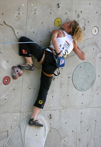 MH: Ты бы хотела, чтобы скалолазание когда-нибудь включили в Олимпийские игры? Как ты думаешь, как это повлияет на спорт в целом? Думаешь, у нас, Бриттов, будет шанс? :-) AE: Было бы очень здорово, если бы скалолазание включили в Олимпийские игры. И было бы просто прекрасной мечтой, если бы мне самой довелось в них поучаствовать. В Австрии победители Олимпийских игр имеют особый статус в обществе и обычно они широко известны. Я помню случай, когда одна женщина заняла первое место в этих играх. Очень немногие знали ее до того, но после ее победы в Олимпийских играх, о ней заговорил весь мир. Она не только сама прославилась во всех национальных газетах, но и тому виду спорта, которым она занималась, стали уделять больше внимания после ее победы чем раньше. Лично для меня было бы просто потрясающе принять участие в Олимпийских играх.