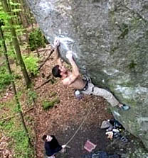 Я начал лазать в своем родном городе Вюрцбург лет десять назад. Город находится где-то в 140 километрах от Франкенюры. Скалолазание для меня это огромное приобретение, я знаю, что до конца моих дней моя жизнь никогда не станет скучной. Мне нравится полностью выкладываться на маршруте или на боулдеринге и так напрягать свое тело на стене, чтобы чувствовать себя по настоящему уставшим после хорошего скалолазного дня. Мне нравится проводить много времени на скалах или боулдеринговых камнях. На данный момент я живу в Нюрнберге, езда до Франкенюры занимает у меня 45 минут, а что может быть лучше, чем пойти полазать, чтобы отдохнуть от своей повседневной жизни в качестве студента экономического факультета?