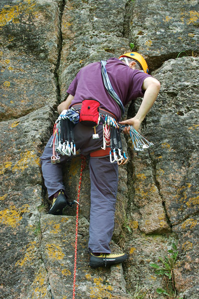 Нет ничего неправильного в последовательности верхняя страховка - нижняя страховка - традиционные маршруты, пока Вы готовы принимать последствия. Однако я рекомендую сразу начинать лазать с нижней страховкой. Это заставляет Вас более остро осознавать последствия. Слишком много скалолазов начинают заниматься спортом, считая, что скалолазание безопасно. Скалолазание не безопасно, оно связано с риском. Вы можете снизить риск, но не можете сделать его совершенно безопасным. Если Вы осознаете это, Ваше внимание эффективно направлено на настоящую ситуацию и ее последствия. Менее вероятно, что Вы будете чувствовать себя безопасно и защищенно и вести себя так, чтобы по возможности избежать риска. Мир парадоксален. Только признавая и принимая риск и его последствия, Вы будете правильно реагировать на опасности и их последствия. В результате Вы поймете, что значит скалолазание в Вашей жизни и как оно удовлетворяет Вашу потребность почувствовать себя живым.