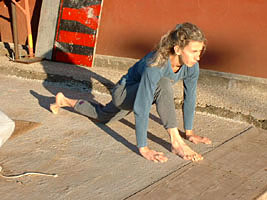 - Если чувство натяжения снижается, тянитесь немного дальше, удостоверившись, что вам комфортно, и вы хорошо удерживаете баланс.
