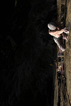 Дэйв Маклеод повторил свою первую 8с+ "L'odi Social" в Сиуране, Испания, чтобы сравнить его с классическим "trad" лазанием на "cutting-edge" маршрутах в Британии, таких как Rhapsody E11 7a (8с+ франц.).