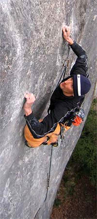 Итак, в прошлом году, для того чтобы попробовать на вкус эту проблему, они совершили две поездки в Швейцарию, что позволило им, несмотря на ужасную погоду, оценить объем стоящей перед ними задачи. На первый взгляд проблема кажется вполне проходимой, но подобно большинству плит таит в себе коварные заморочки, повышающие ее категорию до той максимальной оценки, которой категорирован маршрут. «Bain» это игра под названием «дотронулся и иди», и как говорит сам Маноло: «даже мельчайшие ошибки приводят к падению: потеряешь свой внутренний ритм и ловкость на долю секунды и все!»