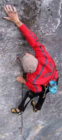 И это так, поскольку любой будет приятно удивлен последним подвигом Маноло, узнав, что он достиг этой скалолазной вершины в возрасте почти сорока восьми лет (скоро его день рождения). Вот такой подарок Волшебник (как его еще любовно называют) сделал себе на день рождения. Стоит также отметить и облик его партнера по приключениям: Riccardo Scarian, уже не отчаянный юнец в свои тридцать восемь, первым покорил последовательность Bain на вертикальной гладкой стене.