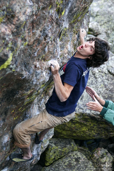 Кажется, вы собираетесь здесь в Колорадо только для того, чтобы потусоваться с травкой, это ключевая мотивация. Кого из вашей компании ты бы отнес к неординарным личностям и почему? Сначала ты, Джо, лучше опять начни лазить болдеринги! Я никогда не видел тебя, потому что ты вечно там щелкаешь свою веревку! Ладно, переходя на личности, давай глянем - Дэниэль Вудс, полный отжег лазить с ним, супер вдохновляющий, и он всегда побуждает меня отодвигать пределы моих возможностей в болдеринге. Seth Allred - больной на голову клаймер, чьи методики просто феноменальны, с ним также офигенно весело. Jamie Emerson, Ryan Olson и Angie Payne тоже супер крутые и удивительные скалолазы, вечно хохмят во время лазания! Herm Feisner - вообще монстр, очень мотивирующее и отжигающее лазание с Seth Meisel и Carlo Traversi. Моя подруга Sarah Orens хоть и не живет с нами на камнях, несомненно, неотъемлемая частичка нашей компании, как и девушка Дэниэля, Laura Griffiths.