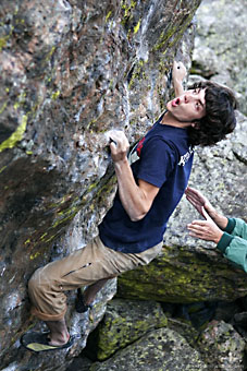 Юнец из Нью Джерси отныне обитает на Колорадских камнях. Пол Робинсон это такой тощий лохматый покоритель мизеров, который улыбается чаще, чем Дэйв Грэм лезет свои восьмерки «с». Пол олицетворяет собой свежий новый подход к скалолазанию, который не так уж часто встречается. Он лазает потому что ему это нравится. Не для того чтобы стать известным, не чтобы опередить кого-то и не для того, чтобы привлечь этим девушек. Пол одержим своей страстью, и это сразу бросается в глаза. Он вылез практически все проблемы на Колорадском Передовом хребте. От знаменитого Nothing But Sunshine 8B от Дэйва Грэма до Circadian Rhythm 8B/8B+, обе эти проблемы редко пролезают, но постоянно пробуют. От отличается от всех окружающих его клаймеров потрясающим упорством и четкой нацеленностью на успех. Пол выкроил немного времени из своего сумасшедшего графика в Колорадском Университете, чтобы побеседовать со мной. Наслаждайтесь!