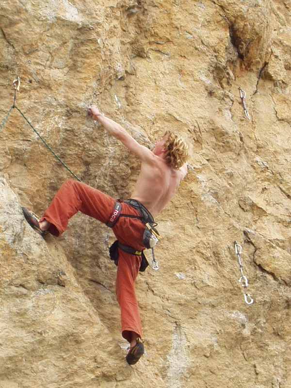 Пытаюсь, как можно больше времени проводить на скалах. Но получается пока маловато 1,5-2 месяца в году. На on-sight лезу 7с+, redpoint 8в, flash 8а. Хотя, реально могу и на плюсик больше залезть. Ну, мне так кажется. :) Вроде, трассу-то уже опробовал, все разложил и по движениям собрал, почти. Надо-то еще две попытки и свежий организм, и кажется, что пролезешь! Но садишься в "Пушка"(машина Игоря Гусака) и мчишься на соревки. Вот, и вся любовь!!!