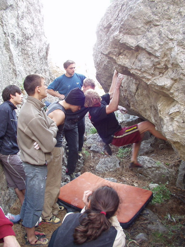Невозможно выделить любимый район в Европе, т.к. мало еще поездил - полазил, полазил - пролез. Да я в Крыму не могу решить, где мне больше нравится. Этой весной мне больше понравилось лазать на Красном камне, чем на Никите, а прошлой наоборот. Очаровал приятный парк камней для любителей болдринга и дружной тусы. Серёге (Ковалеву) и компании большой респект.