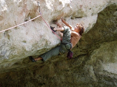 Обычно имеется «завершающий маршрут» с призовыми деньгами и провешенные веревки для фотографов и в этом году 8c+ и, соответственно, 8b были покорены следующими товарищами: Kleman Becan, Chris Sharma, Charlotte Durif, Martina Cufar и Lynn Hill. Sharma сделал маршрут на восьмой день непрерывного лазания, и я думаю, это еще раз подтверждает то, что он далек от того, чтобы проводить нескончаемые дни в зонах изоляции на соревнованиях для того, чтобы пролезть один единственный маршрут. На девятый день мы встретили его вместе с Graham'ом на скалах. Они просматривали некоторые 80-ти метровые стены в Gorges du Tarn и прошло совсем немного времени прежде чем глаза Криса сосредоточились на маршрутах. – А что здесь за маршруты? – Я думаю, какие-нибудь 6c и 7a, ответила его девушка. – Вау, надо их пролезть! Так что, как вы видите, этому парню дни отдыха не нужны… - Отлично, тогда полезли их босиком и без веревок, как я делал в старые добрые дни (на лице его проглядывает эдакая отцовская улыбка).