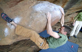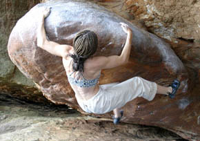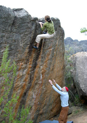 Кристиан Кор, 32 и Стелла Маркизио, 28, и в самом деле крутая пара. Они живут в 15-ти минутах от Финале – одного из лучших скалолазных районов Италии. Оба они профессиональные скалолазы, их спонсорами являются Бореаль, Прана и Пэд. Стелла работает в магазине, торгующем скальным снаряжением. Кристиан – полицейский, итальянское правительство оплачивает ему расходы на лазание (в Италии скалолазание является национальным видом спорта). У него есть значок полицейского и все дела. Ему даже платят за участие в соревнованиях. Он едет путешествовать, а они снимают фото и видео его приключений. Они приехали в SA (Кейптаун – Роклэндс – Кейптаун) всего на три недели – ни веревок, ни обвязок – всего лишь два большезадых боулдеринговых мата, скальники и мешочки с магнезией.