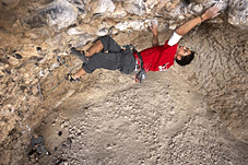 А вот его полная противоположность если говорить о стиле - Вася Воротников (ВВ). Человек-машина. Железные мышцы. Живое доказательство того, что мощь и техника могут сосуществовать вместе. Работая над возможной 5.15а Jaws ВВ демонстрирует лазание отличное от спокойной выверенной манеры Кима, яростно впиваясь в мизера. Безукоризненная техника, поразительная выносливость, динамичные и мощные движения, но под этой брутальной оболочкой спрятан чуткий и проницательный человек. В чем же секрет?