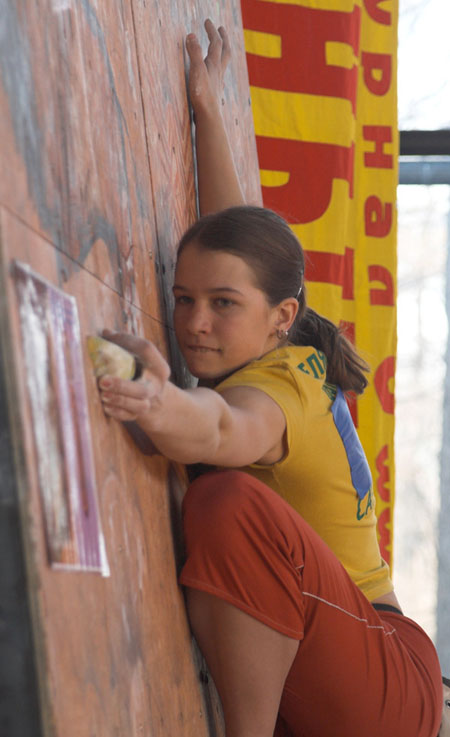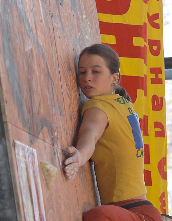 О. На тренировках конечно лазает болдаринг, трудность, на уровне хорошем. Сейчас много соревнований, в Москве, потом они сразу же поедем в Воронеж, там будет трудность и скорость, а потом мы сразу уезжаем в Болгарию, там будет кубок Мира, в скорости, поэтому тяжело, и решили, что она примет участие только на скорость.