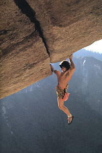 Да, Другая Реальность это идеальный пример свободного лазания для меня. В 1979 году мы увидели на обложке известного журнала Mountain фото Ray Jardine, лезущего этот маршрут, и это произвело такое впечатление на нас, что мы в первый раз решили поехать в Йосемиты. И тогда мы в полной мере осознали, насколько название соответствует маршруту: опасный ключ перед самым краем, около двухсот метров над рекой, горизонтальный потолок – мы не могли сделать ни единого движения. Было такое ощущение, что ты попал в полностью иной мир.