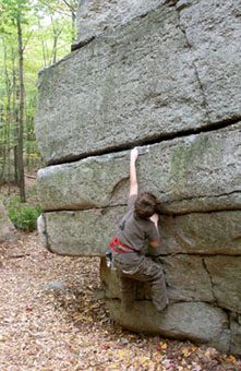 Все скалолазы, вне зависимости от уровня лазания подвержены риску Синдрома Повреждения Плеча. На фотографии Xavier Ryan тянется вверх в Peterskill, the Gunks, New York |