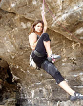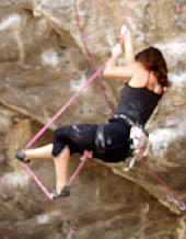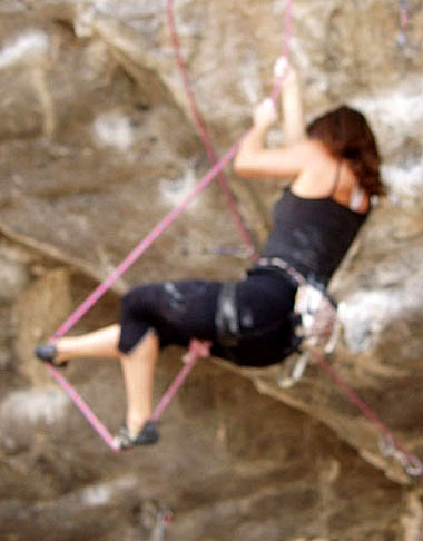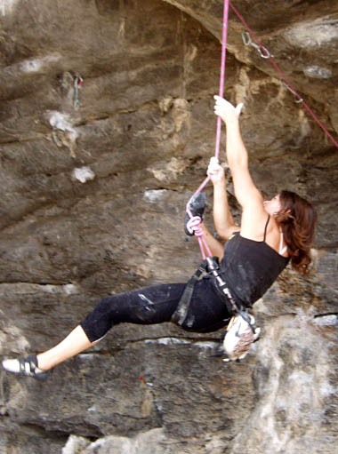 Внезапно она поставила ногу на веревку и пошла по ней, пока не ухватилась за оттяжку, и страхующий выбрал слабину. Я побежал за камерой, и вот, любуйтесь ;)