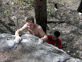 На скалах, к сожалению, я тренируюсь очень мало - в прошлом году только 1 месяц. Поэтому для меня главную роль играют тренировки в зале. А на скалах я подтверждаю тот уровень, на котором я лазаю в зале. Честно говоря, я всего на скалах был 2 раза =)
