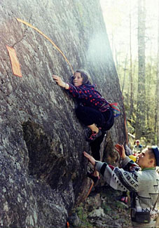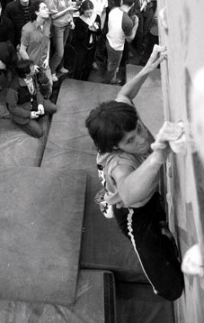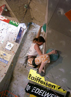 Слабее всего у меня, наверное, скорость. Раньше по детям её часто выигрывала, а теперь такие дети пошли, что за ними не угнаться.) Да и как-то сам вид мне не очень нравится: не люблю спешить куда-либо. На скорость приятнее смотреть - очень зрелищно. Трудность и боулдеринг - другое дело. Там можно не торопиться и спокойно оценить свои действия. В трудности меня часто подводит выносливость, если трасса длинная приходится жать изо всех сил к концу, а сил частенько не хватает. В боулдеринге подводит голова, ну тут уж ничего не поделаешь:)