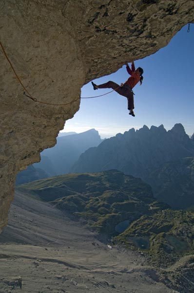 Гигантский карниз Cima Ovest – вне всякого сомнения – один из самых впечатляющих объектов в мире скалолазания. Впервые эти 40 метров по горизонтали были покорены немцами Gerhard Baur и братьями Rudolph, их маршрут получил известность как «величайший карниз мира».