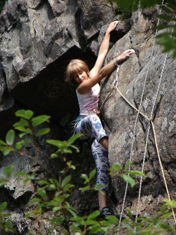 Я пришла на скалолазание, когда ходить, говорить и хамить еще не умела. В мае 1995 г., мне было 8 месяцев, и как сейчас помню, выиграла соревнования «Скалолазание для всех» на оз. Ястребином и получила приз – банку сока.)) И так по чуть-чуть с самого детства начала лазать по скалам. Мои родители – настоящие спортсмены и в 7 лет вместе с 5-ти летним братом отвели меня на скалолазание.