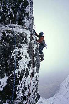 Запомнилось, как я проходил вторым Right Wall, страхуя Libby Peter. Это была ее первая Е5. Первое зимнее прохождение маршрута Travesty я тоже делал с Libby , а первопрохождение маршрута Cracking Up с James McHaffie. Оба они были на Clogwyn Ddu (Северный Уэльс) прошлой зимой.