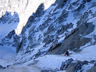 NB : Глобальное потепление происходит и это видно. Я уверен, что сейчас зима в Альпах напоминает лето какое-то время назад. Помню, когда я только начинал заниматься альпинизмом, в одном из обозрений была статья о зимнем альпинизме и о том, как сделать горелку более эффективной. Кажется, ее автором был Dick Renshaw. Тогда у меня сложилось впечатление, что на свете не так много крутых парней, способных вынести тяжести зимы. А сейчас посмотрите на Tacul - люди выгуливают собак и едят мороженное. А Северная стена Droits за четыре последние зимы так и не замерла по-настоящему, то же самое и Shroud. Ледники отступают буквально на глазах. И нет уже необходимости в усовершенствовании горелки, чтобы приготовить себе лапшу.