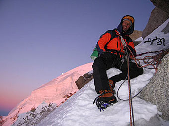 Рядом с вершиной Aiguille Verte, маршрут ‘There Goes the Neighbourhood’ / ‘Cohen/Collister’ (фото: Andy Houseman) |