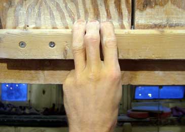 На кампусборде можно использовать три вида хватов, но я заставляю себя пользоваться только открытым и раскрытым хватами.
