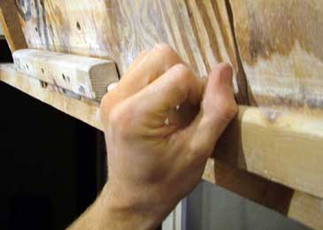 Кампусборд предельно прост – слегка нависающий деревянный щит с рядом деревянных планок, равноудаленных друг от друга. Упражнения на кампусборде представляют собой подъем вверх по планкам без использования ног, так что вся нагрузка приходится на пальцы и руки. Очевидно, что кампусборд бесполезен, если вы пренебрегаете лазанием, которое включает также и технику постановки ног, однако тренировки на нем могут стать хорошем подспорьем в тренировочном процессе.