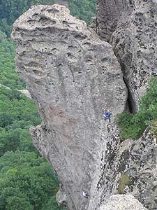 Организаторы постарались учесть и пожелания начинающих скалолазов. Каждый желающий мог попробовать свои силы на простых трассах с верхней страховкой и получить элементарные представления о скалолазной технике и снаряжении.