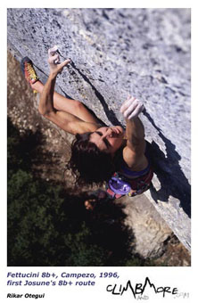 Фото: Fettucini 8 b +, Campezo , 1996, первая 8 b +. Фото Rikar Otegui .