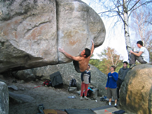 Как тебе наш Send Fest? Я ездил туда с приятелями из Японии. Chris Sharma выиграл фестиваль, а я был вторым: собралось множество первоклассных скалолазов, масса впечатлений. Я был счастлив, заняв второе место. Я познакомился с Daniel'ом и Ben'ом, и с массой других классных ребят из Колорадо. Я собираюсь вернуться туда в скором времени, потому что так и не попробовал V13, которую запланировал.