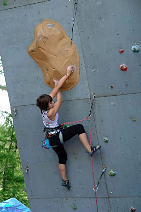 Ну, это зависит от того, на что лазишь. Когда лазаю на трудность, то чаще всего по нависанию, стараюсь лазить трассы по мизерам. А на скорость или через небольшой карниз или по нависанию.