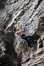 Первый заход на Люцифера окончился, как и многие до него: падением после пятого болта. В этот раз, однако, я почувствовал, что сделал движение лучше, слегка промахнувшись мимо зацепы, на которую кидался. На самом деле я перелетел выше нее... Это движение начало преследовать меня. Не смотря на его сложность, я все-таки считал, что должен был делать его в каждой попытке. Спустился, отдохнул несколько минут и полез снова. На этот раз солнце пригрело и камень стал на немного склизским на ощупь. Мои руки скользили, когда выходил на ключ к пятому болту, и я снова слетел. Спустился, в уплющенном настроении.