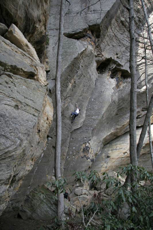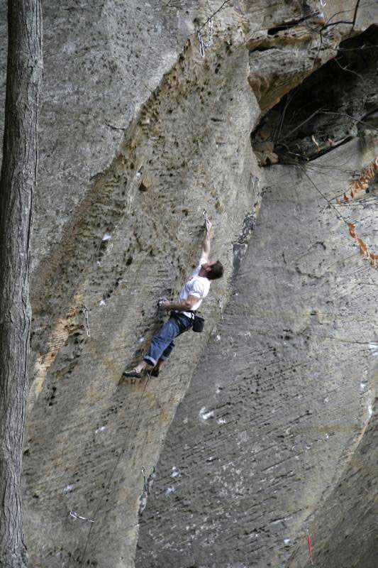 Место действия: The Red River Gorge, Kentucky, США, район под названием Purgatory (Чистилище). Трасса Lucifer. Пробита года четыре назад, но никто не мог ее пролезть. Майк Дойл в своем блоге описывает ее первовосхождение.