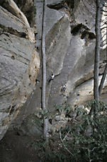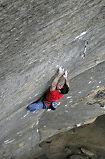 -Thanatopsis был легче до 4-го шлямбура, шесть боулдеринговых движений до огромного места для отдыха, и потом одно последнее трудное движение.