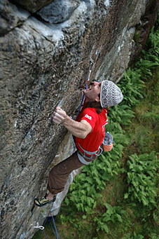 Dave MacLeod на Ring of Steall (5.14c) в Glen Nevis. Маршрут назван так в честь знаменитого походного маршрута неподалёку, обходящего по горизонтали семь вершин около Ben Nevis. Фотограф Claire MacLeod, взято с www.davemacleod.blogspot.com |