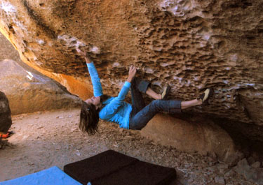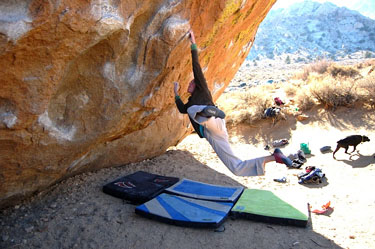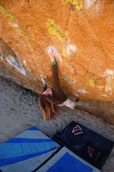 Kelly McBride побывала в Bishop'e в середине Февраля и "привезла" оттуда несколько маршрутов в свою копилку. Наиболее впечатляющим является маршрут Center Direct (V10) в Peabodies, который местный парень Wills Young описывает следующими словами: "Невероятная жесть для низкорослых скалолазов".